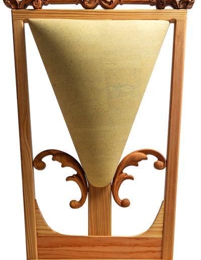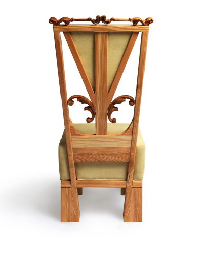 Das Design des Stuhls zeichnet sich durch zwei subtile Details aus: das eine ziert die Oberseite der Rückenlehne, das andere den unteren Teil der Rückenlehne. Die viktorianischen Details, die die Sonnenstrahlen symbolisieren, verleihen dem Stuhl einen unverwechselbaren Charakter und schaffen ein Zusammenspiel zwischen der Ästhetik der Vergangenheit und dem zeitgenössischen Design.