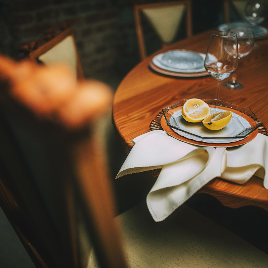 Za osnovo izbranih kosov uporabljamo macesen, pogosto v kombinaciji s slivo, iz katere so izdelani dekorativni vložki na stolih. Slivin les prinaša naraven rdečkasto-topel podton, ki pohištvu doda globino in unikaten značaj.