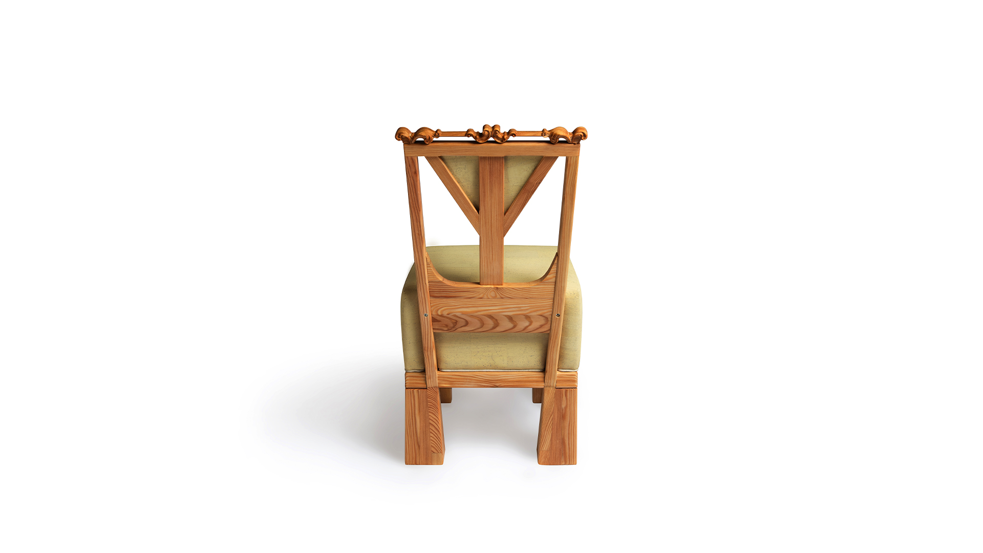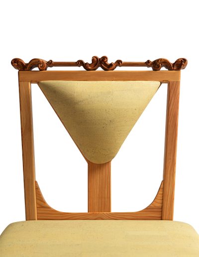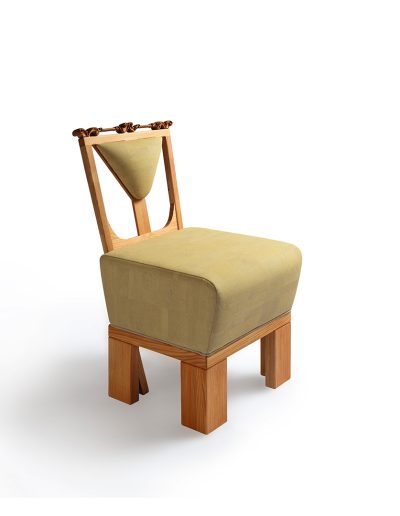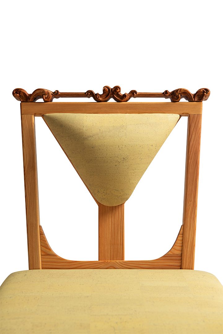 Nizek jedilni stol Isadora združuje robustnost, udobje, funkcionalnost in umetnost v brezčasen dizajn. Voluminozno oblazinjenje v svetlo rumeni barvi se lepo sklada s barvnim kontrastom lesene konstrukcije iz masivnega macesnovega lesa, ki ga dopolnjujejo prefinjeni viktorijanski detajli iz slivovega lesa.